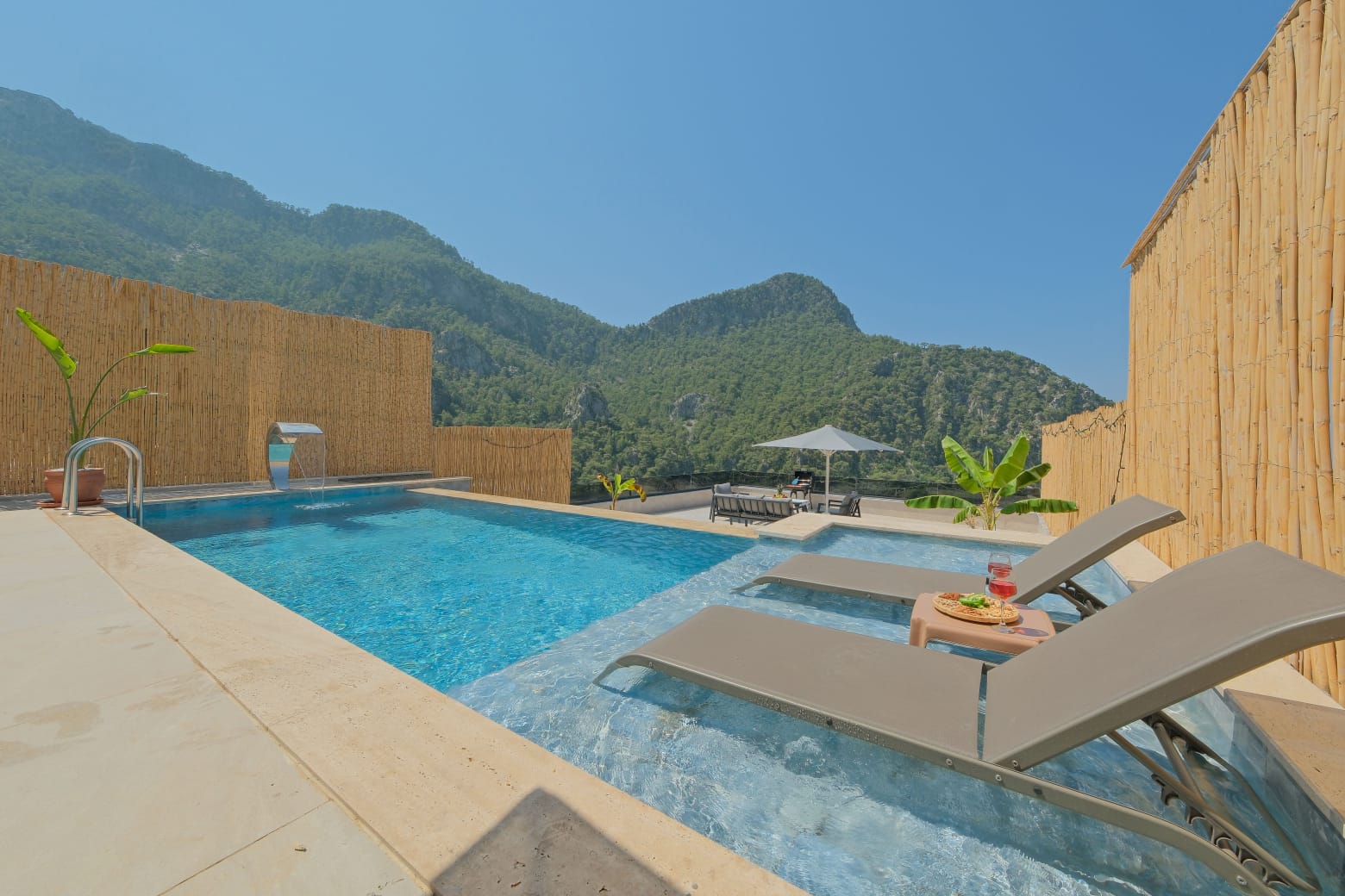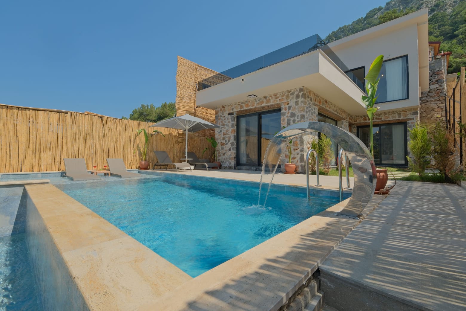 Kelebekler Vadisi’nde 5 dakika yukarıda yer alan villamız kapanmaz deniz manzarası ve muhteşem doğa manzarası ile içerisinde jakuzi bulunan toplamda beş yetişkin kapasiteli bu sene inşasız tamamlanmış mükemmel bir villamızdır.